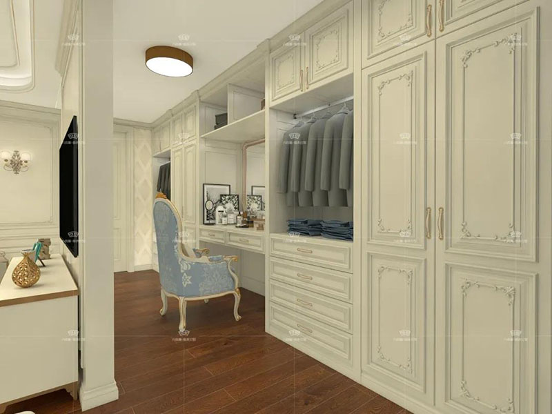 入戶采用的是子母門的設計,配合寬闊的走廊,旁邊是橫排的入戶柜,配合經典的雕花裝飾,所有的搭配均體現了主人豪邁優雅的氣質。